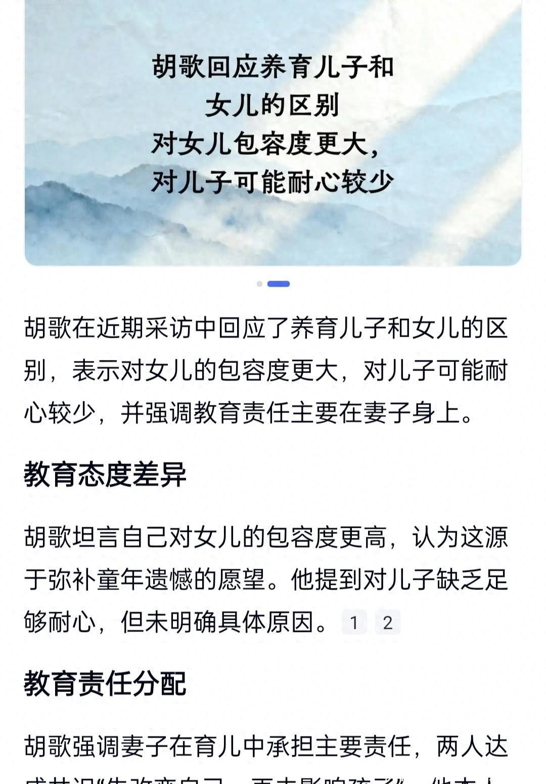 最近胡歌在访谈里的坦诚发言刷屏了!这位一直把家庭藏得严实的明星,不仅间接官宣了4个月大的二胎儿子,还直言养育儿女的差别:对两岁女儿小茉莉宠到没底线,带她闯4700米高原、拼深夜乐高城堡,可对儿子却耐心减半,说“男孩得摔打着长大”。更让人动容的是,他从称呼妻子“我太太”变成“她妈妈”,还自曝推掉S级剧本,只为多陪孩子弥补缺席的遗憾。